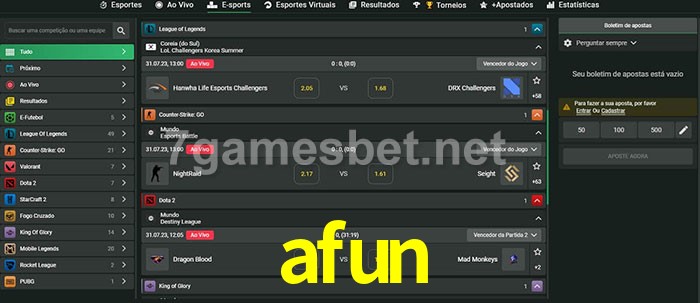 A aposta afun oferece aos jogadores a experiência mais conveniente de apostas em eSports!